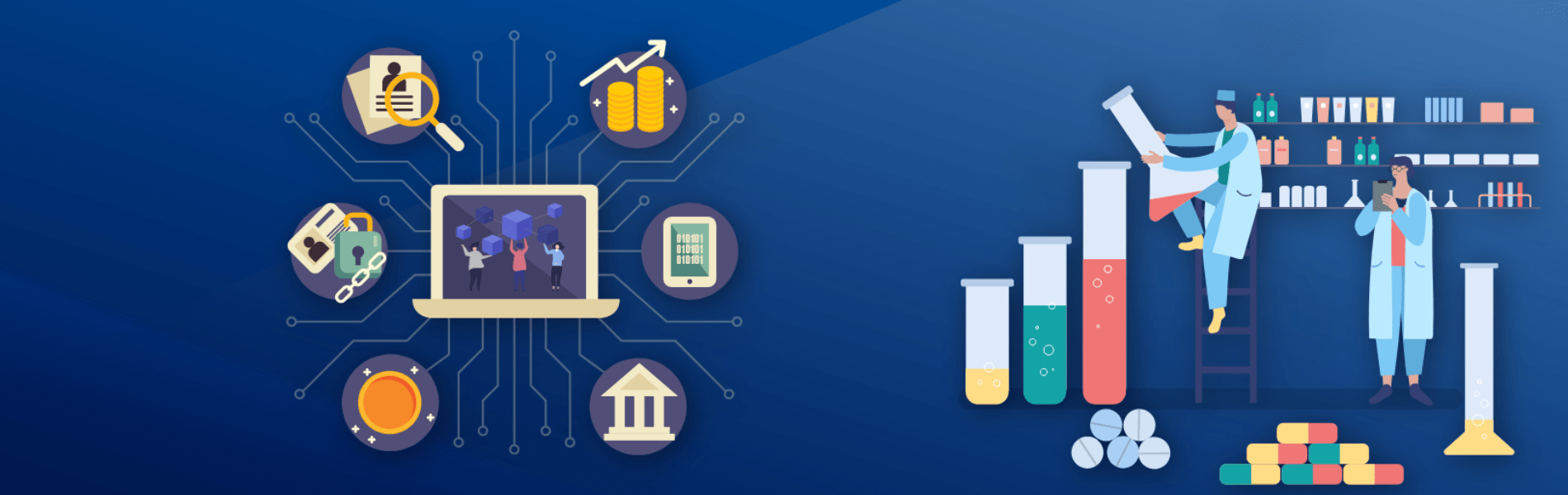The pharmaceutical sector compiles a lot of data, goods, financial transactions, and many other external and internal operations. There are many fields in Pharma where users can avail blockchain benefits like research, testing, drug development and a well-managed distribution channel to various pharmacies. This solution can help seek solutions to some of the major roadblocks prevalent in this field.
